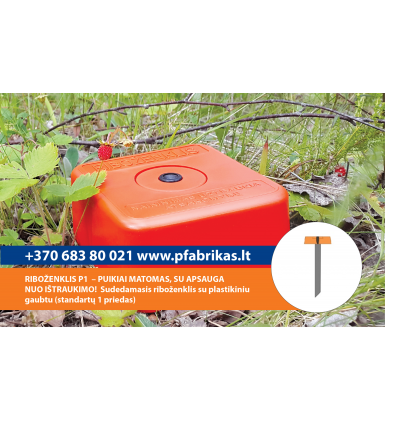 Sudedamasis riboženklis su plastikiniu gaubtu ( standartų 1 priedas). Galima žymėti visas žemės savininkų bei valstybinės žemės ribas, išskyrus sklypus kietomis dangomis (asfaltas, plytelės, betonas). Keturkampis dangtelis aukštomis sienelėmis daug geriau matomas nei riboženkliai plokščiais dangteliais.