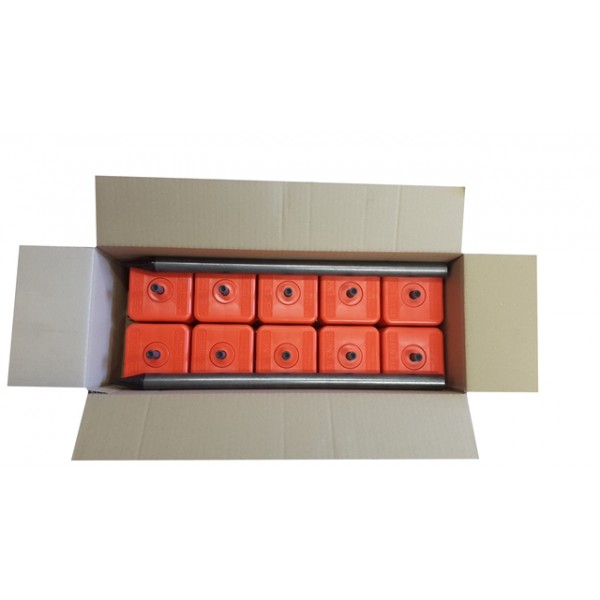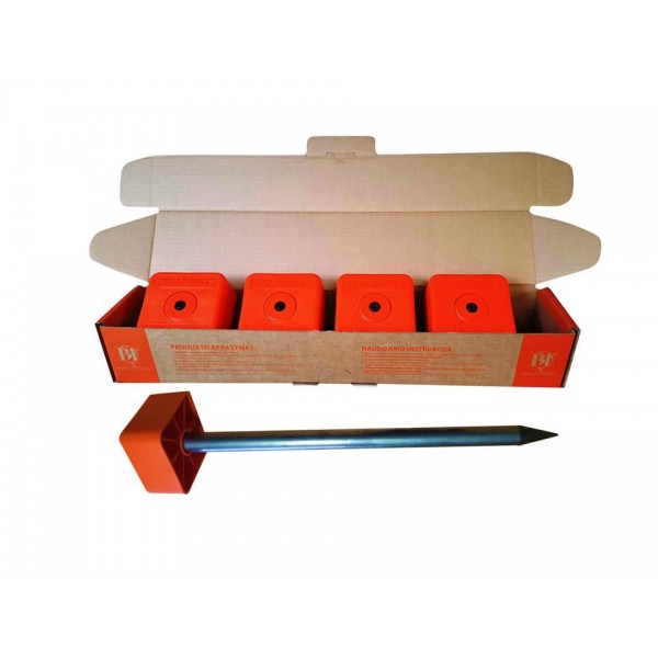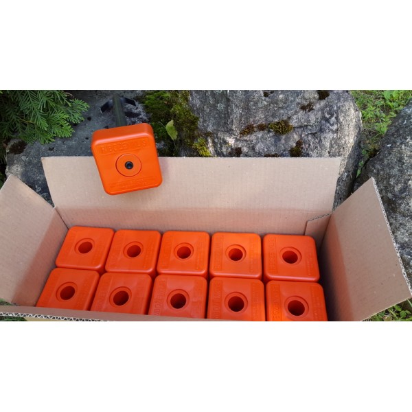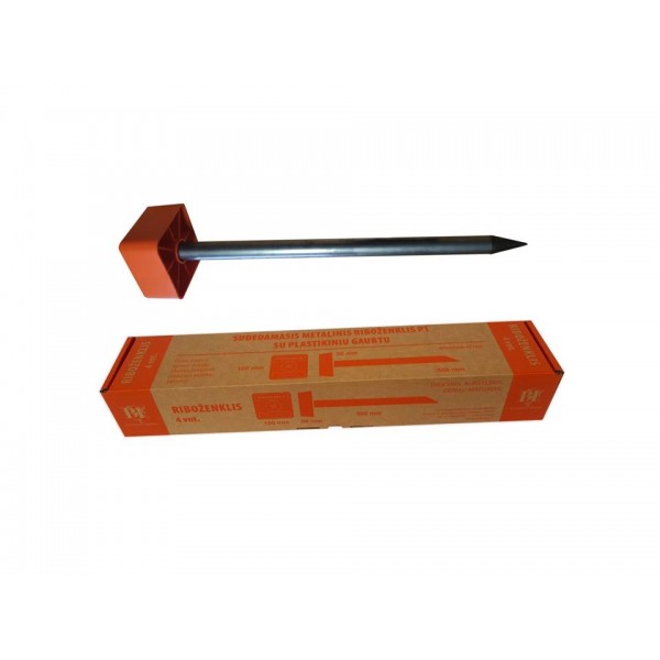 Puikiai matomas didelis, aukštas dangtelis !! Ypač tinka miškų riboms žymėti. Sudedamasis riboženklis su plastikiniu gaubtu ( standartų 1 priedas). Galima žymėti visas žemės savininkų bei valstybinės žemės ribas, išskyrus sklypus kietomis dangomis (asfaltas, plytelės, betonas). Keturkampis dangtelis aukštomis sienelėmis daug geriau matomas nei riboženkliai plokščiais dangteliais. Riboženklį sudaro: Plastikinis ryškiaspalvis gaubtas (10x10x5 cm) su pleištu, tuščiaviduris strypas ir plastikinis antgalis. Sukomplektuoto riboženklio aukšti ~ 50 cm.